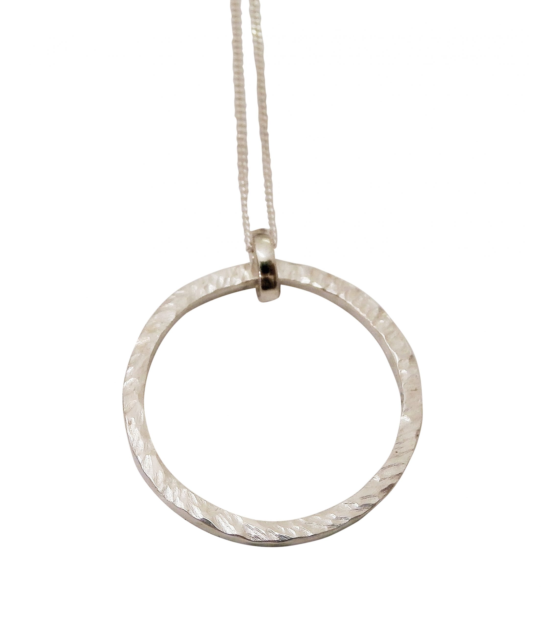 Dimensions: Pendant approx. 20mm diameter, suspended on an 18-inch sterling silver chain.
