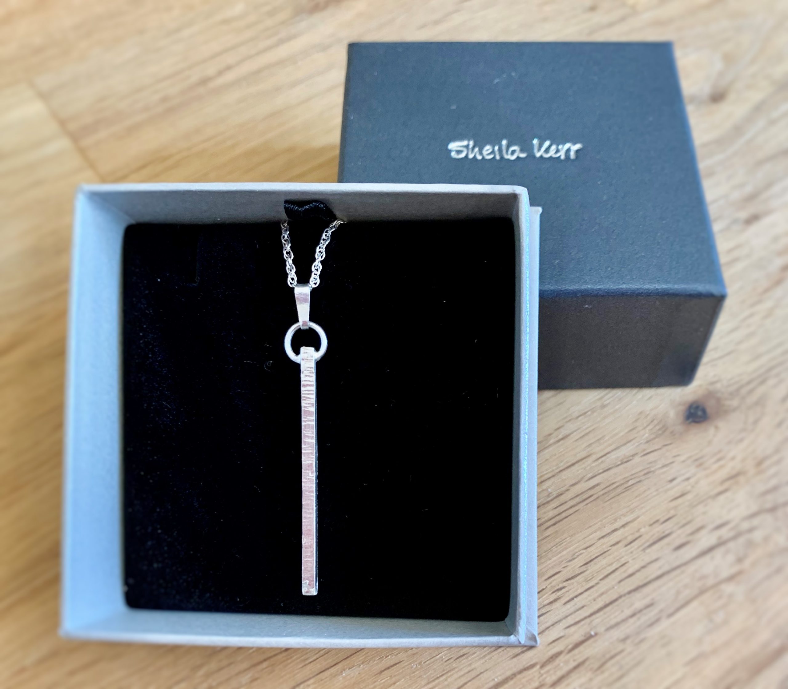 The Pillar Collection was created by Sheila Kerr and represents the need for strength during the ups and downs of life. Your pillar pendant is handcrafted in the Sheila Kerr harbourside studio on the West Coast of Scotland. Complete with 18 inch sterling silver chain, the pendant carries the SK maker’s mark from the Edinburgh Assay Office. Gift box and inset card included.